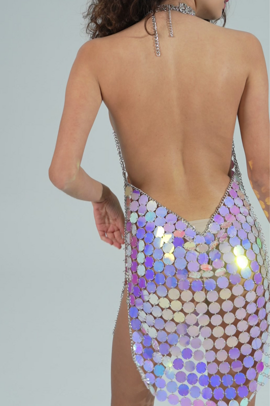 Gradient Blue Sequin Backless Dress