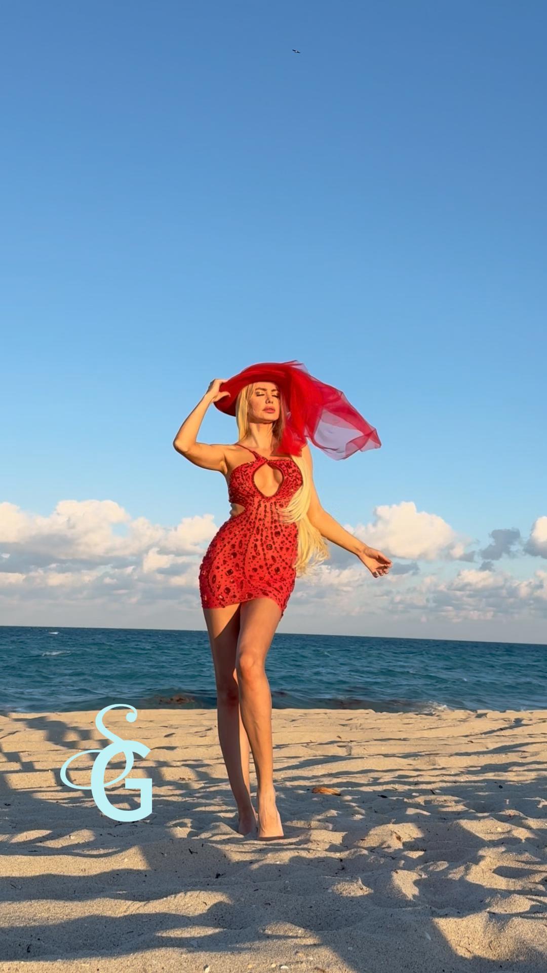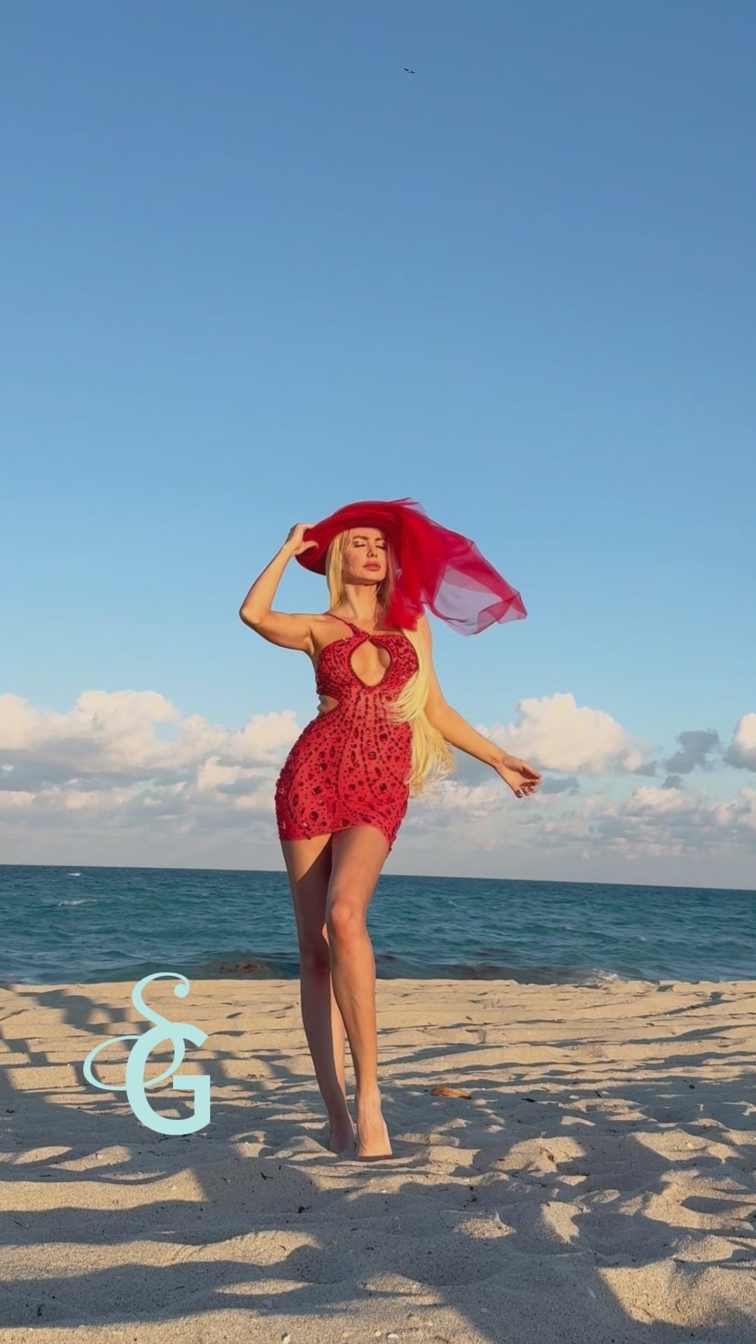 Turn heads in this stunning red crystal-embellished mini dress, perfect for beach vacations, parties, and special nights out. Designed to accentuate your curves, this dazzling dress features a keyhole cutout, side cutout details, and intricate crystal embellishments that sparkle under the sun or lights. The body-hugging fit ensures a bold and confident look, making you the center of attention wherever you go.