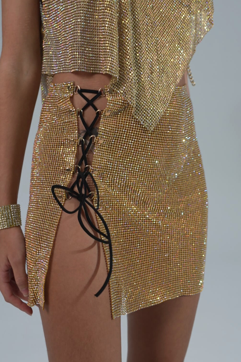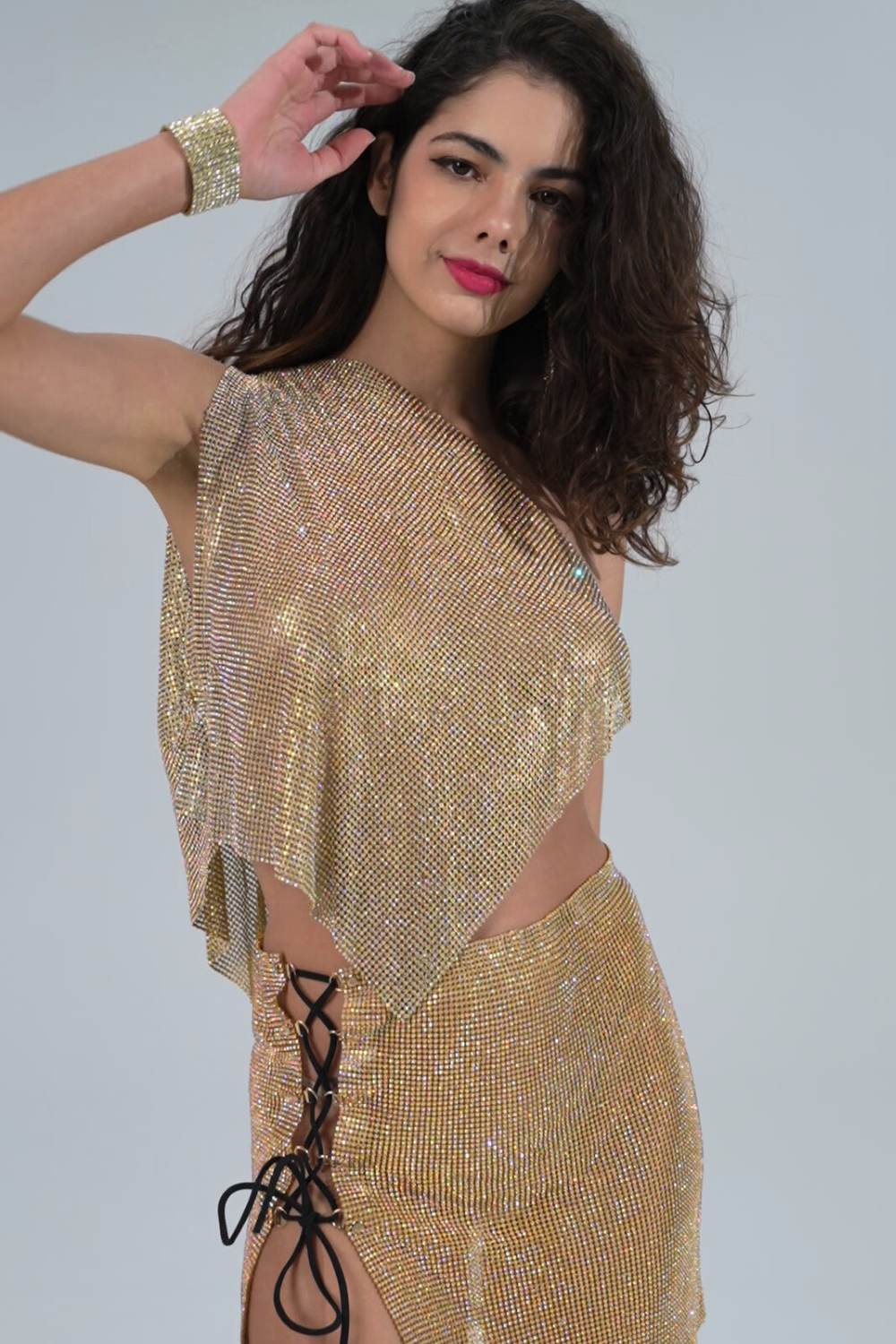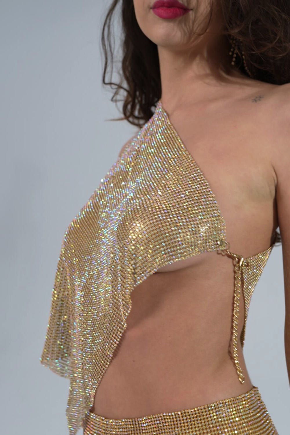 This 2PCs Chainmail Skirt Set is crafted entirely of aluminum, making it a delicate material. It has no give whatsoever, thus sizing up is strongly advised. If your hips are bigger, avoid tugging on the dress, as it may tear. Moreover, the metal is ideal for near water usage, as it won't rust and will keep its color. Cleaning it is easy too, just wipe it with a napkin.