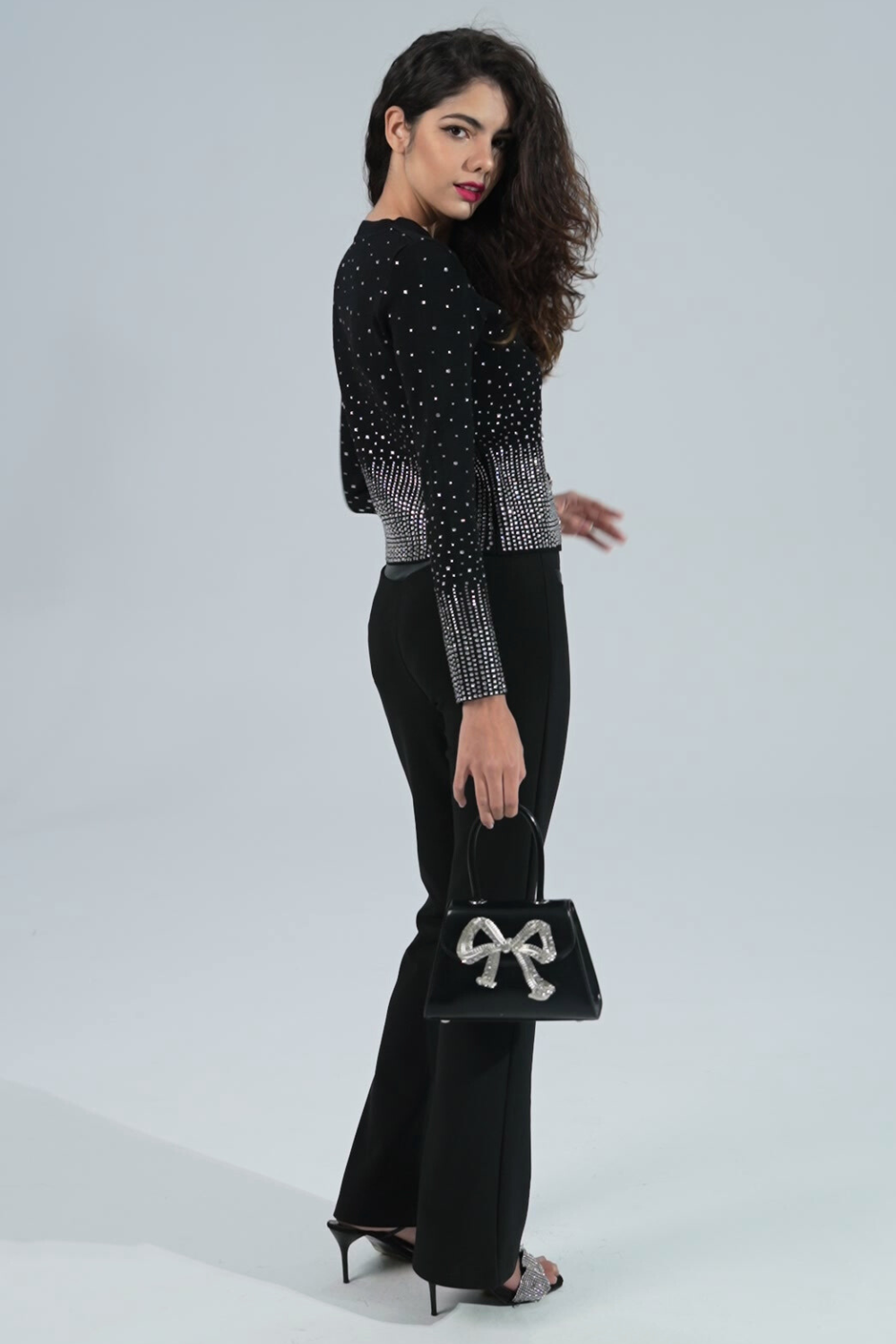 Experience the timeless elegance of the Crystalized Obsidian Knitted Top. Crafted with superior materials, this top provides all-day comfort with its fashionable design. The unique look is perfect for any season and can be paired with skirts, leggings, and pants, making it the ideal choice for casual occasions.