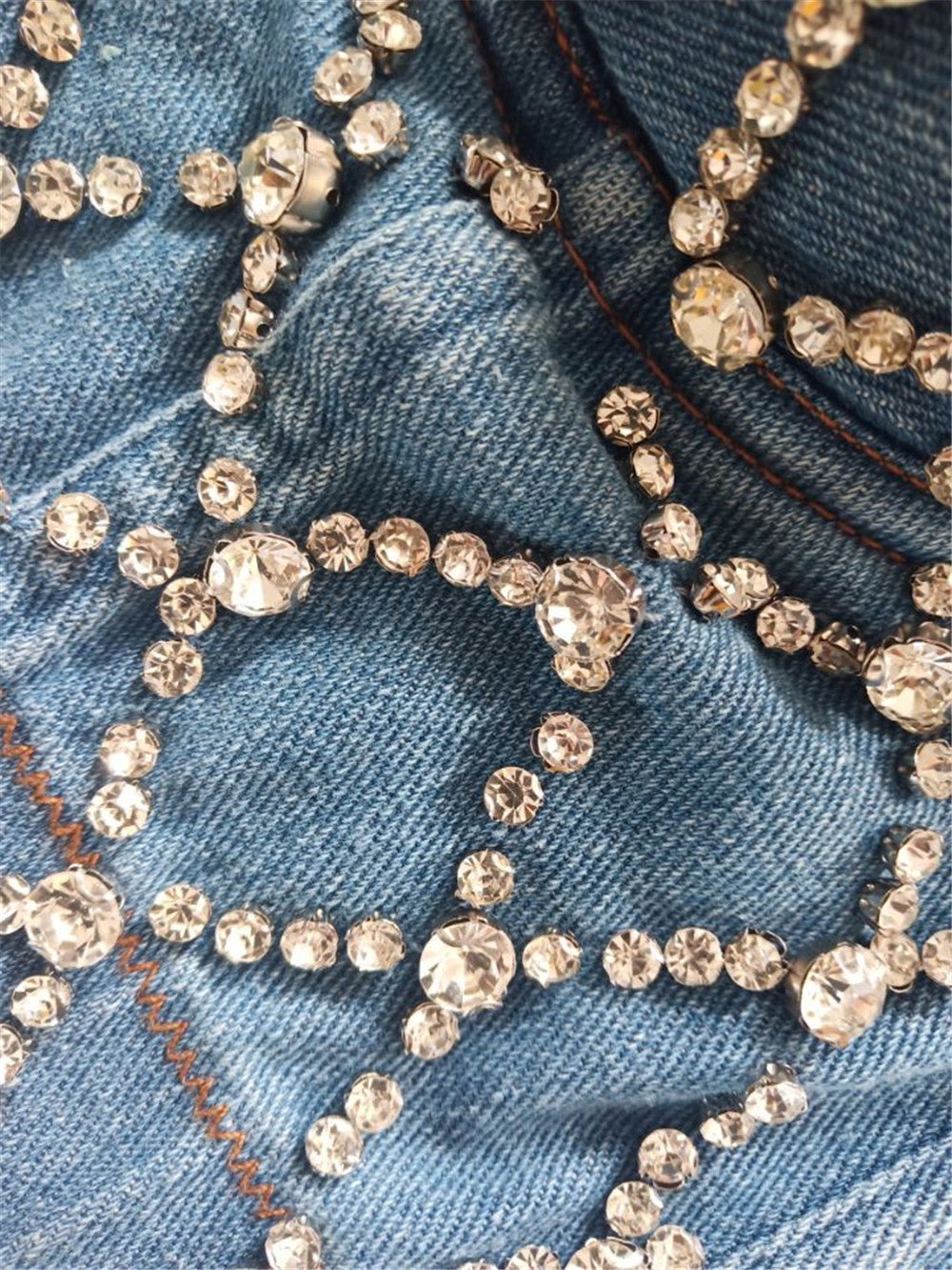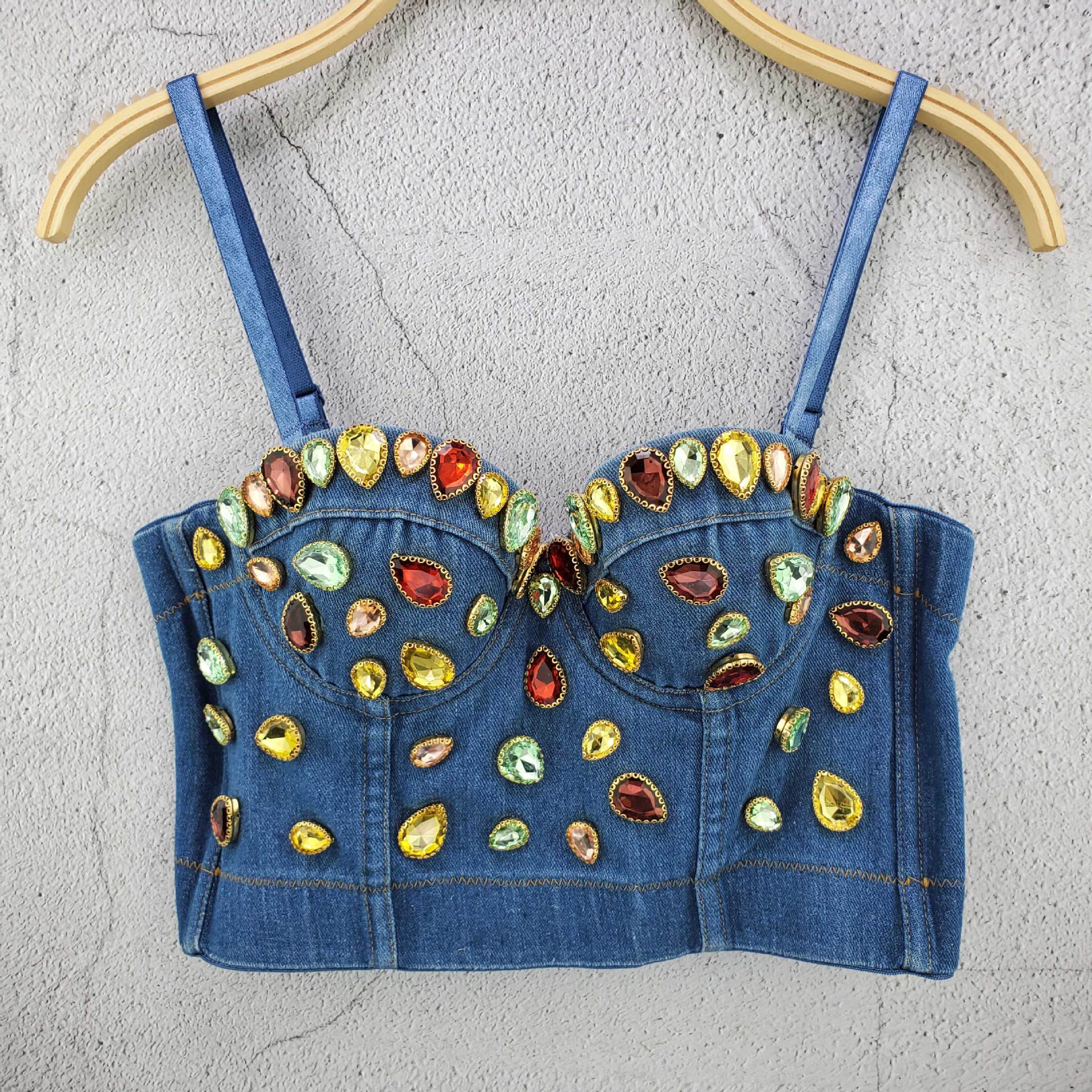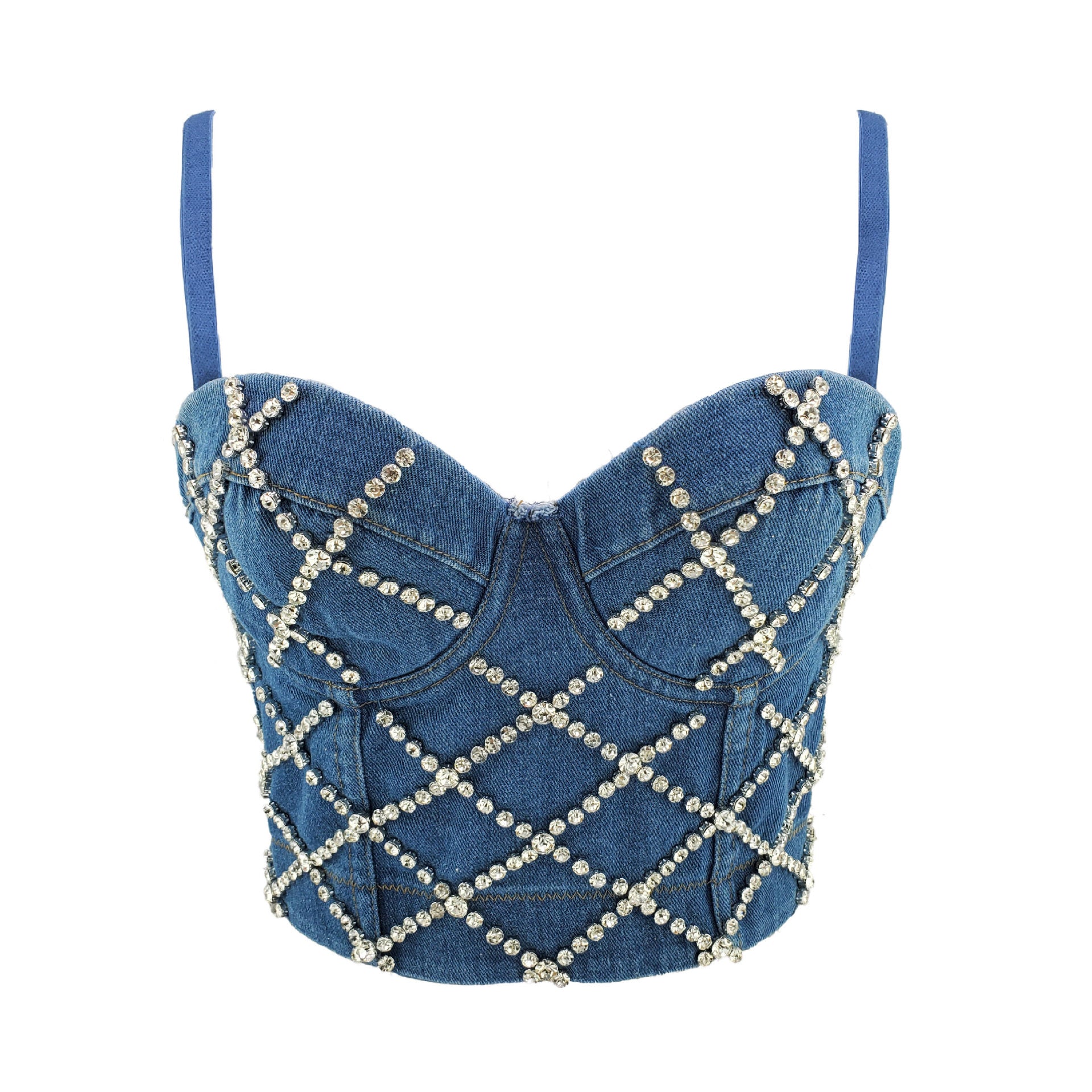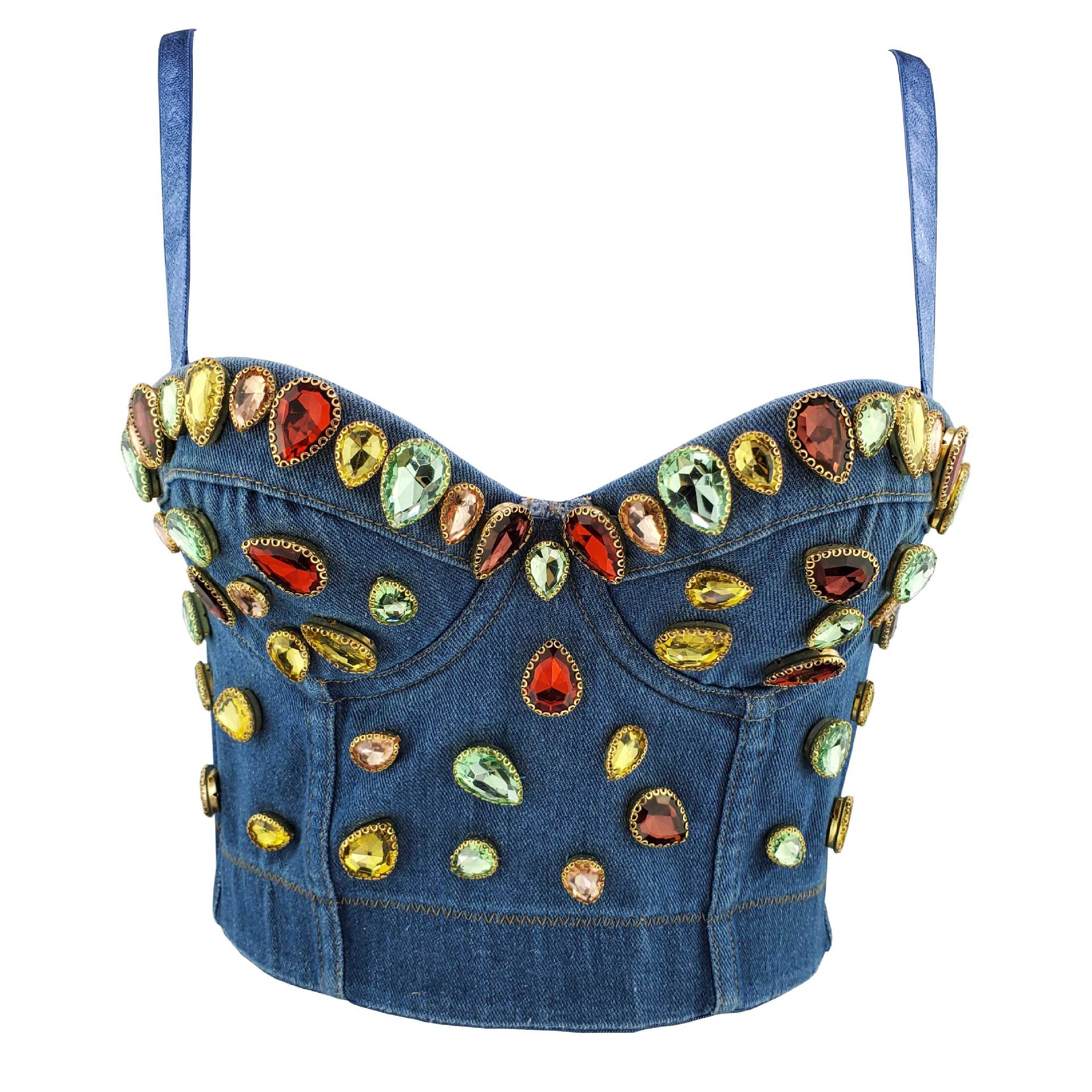 Denim Crystal Corset Top
