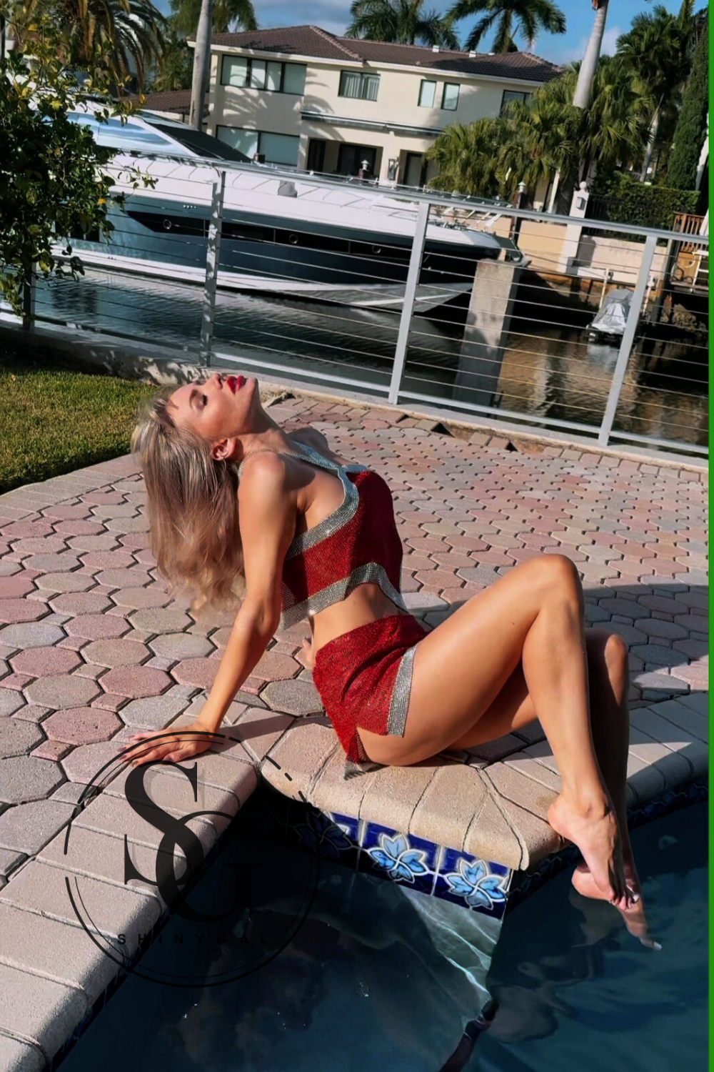 π₯ Red Rhinestone Chainmail Top & Skirt Set