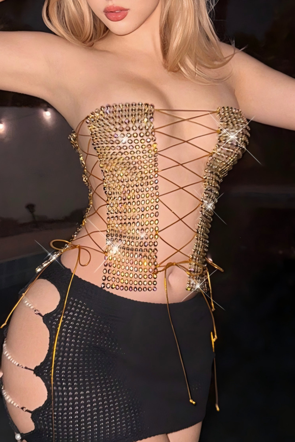 Flash Diamond Lace-Up Strapless Corset Top